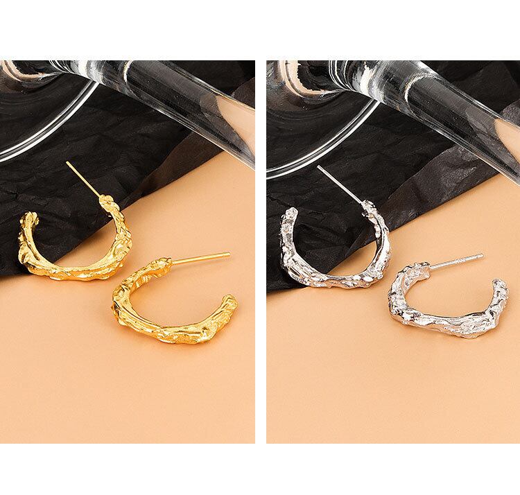 LIVVY シルバーカラー不規則な C 字型のイヤリングの女性のレトロなライト高級気質ジュエリー 指輪 銀 Liv19442605589