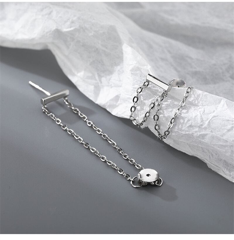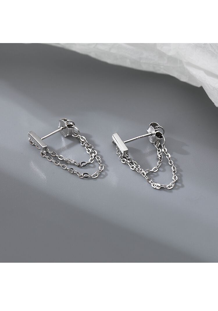 LIVVY シルバーカラーダブルチェーン Tel スタッドピアス女性トレンディエレガンスパーティージュエリーアクセサリー イヤリング リング 指輪 銀 Liv31195816305