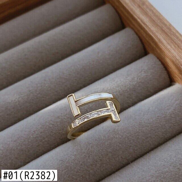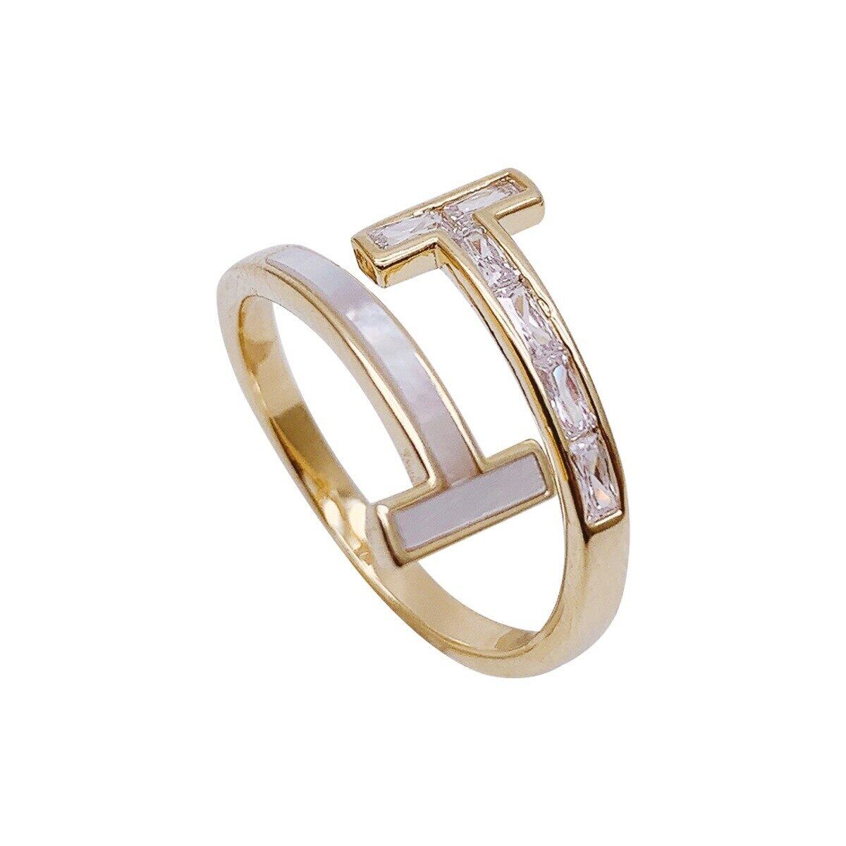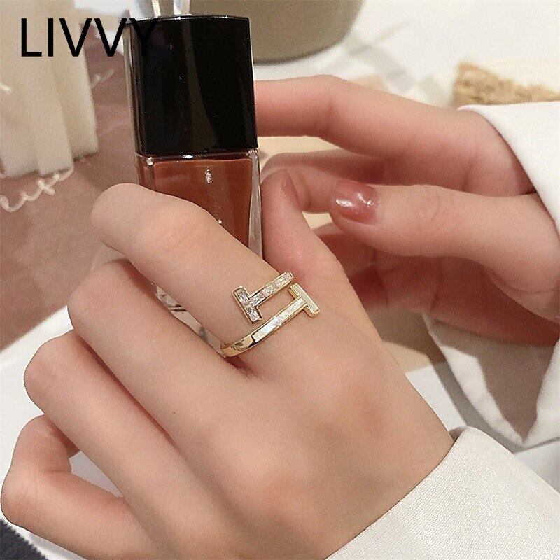 LIVVY トレンディジルコンクリエイティブダブル T 字型リング女性トレンドパーティージュエリーアクセサリーギフト 指輪 Liv80260259000