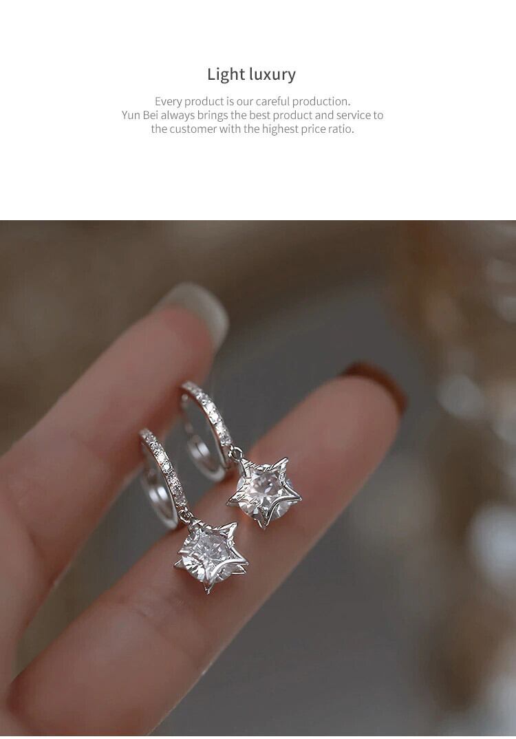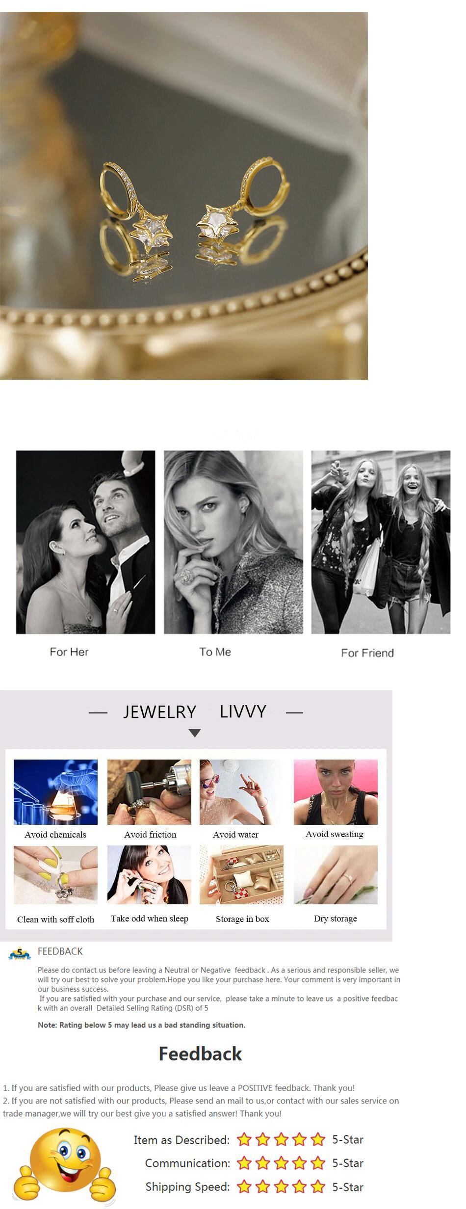 LIVVY シルバーカラースターペンダントジュエリー丸型ジルコンかわいいトレンディなスタイルのイヤリング女性のガールフレンドファインウェディングギフト 大人ガーリー スウィート キュート カジュアル 指輪 銀 Liv53428431378