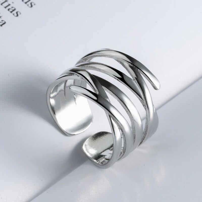 LIVVY シルバーカラーオープンリング女性インミニマリスト不規則なクロスパターンゴールドカラージュエリービジュー誕生日 指輪 銀 Liv70274922339