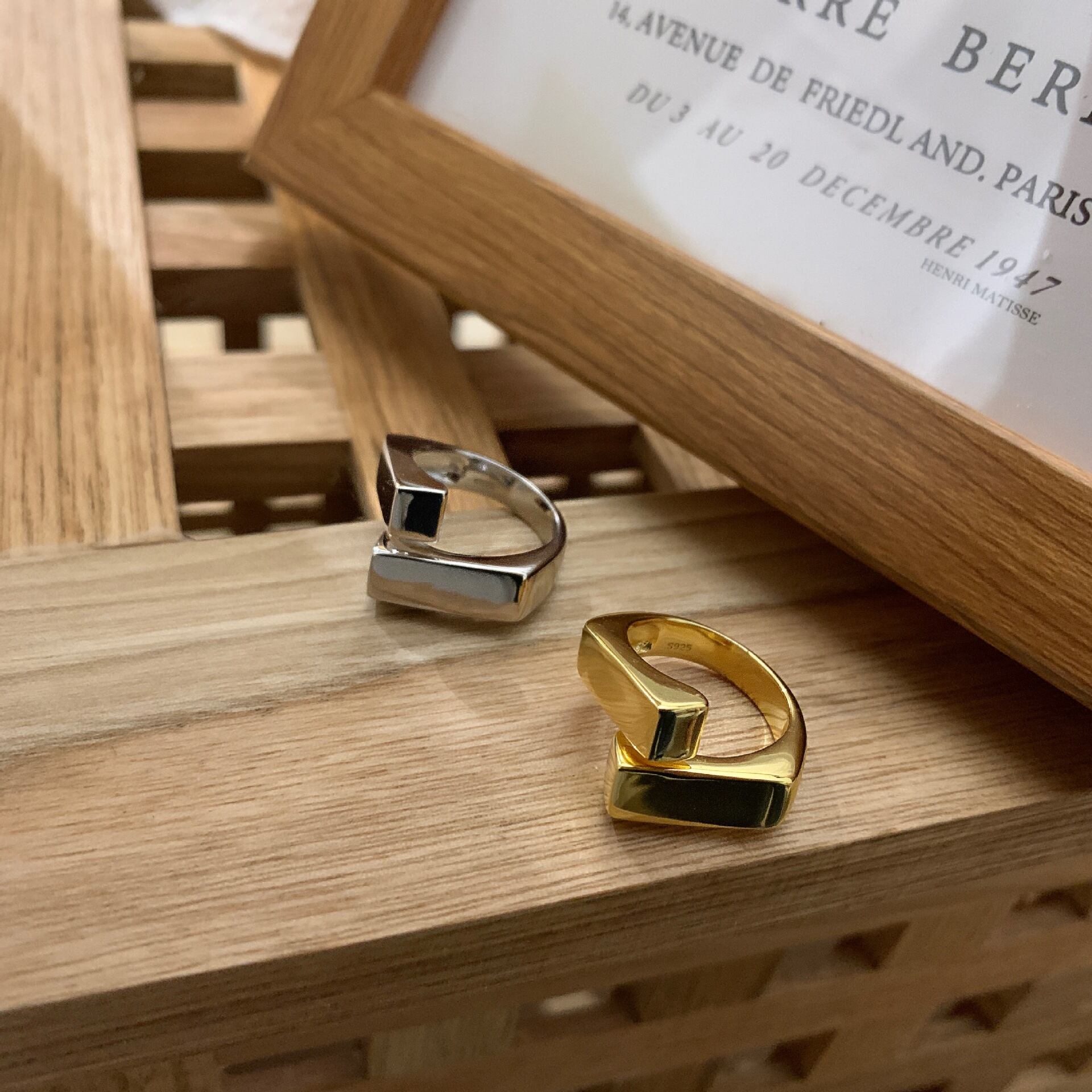 LIVVY シルバーカラー幾何学長方形ハグゴールドカラーパーソナリティ調節可能なリング女性パーティーアクセサリージュエリーギフト アジャスタブル 指輪 銀 Liv26705463826