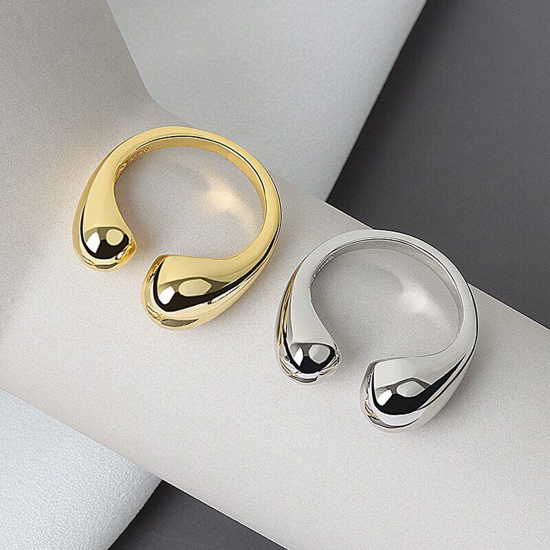 LIVVY シルバーカラージュエリーダブルボールビーズオープニングリング女性カップル 2021 トレンドジュエリーギフト 指輪 銀 Liv99356875790