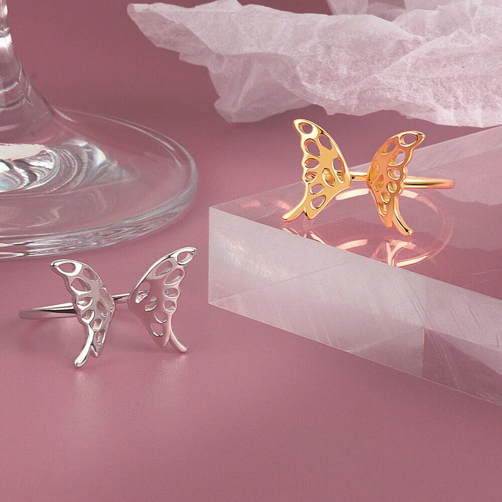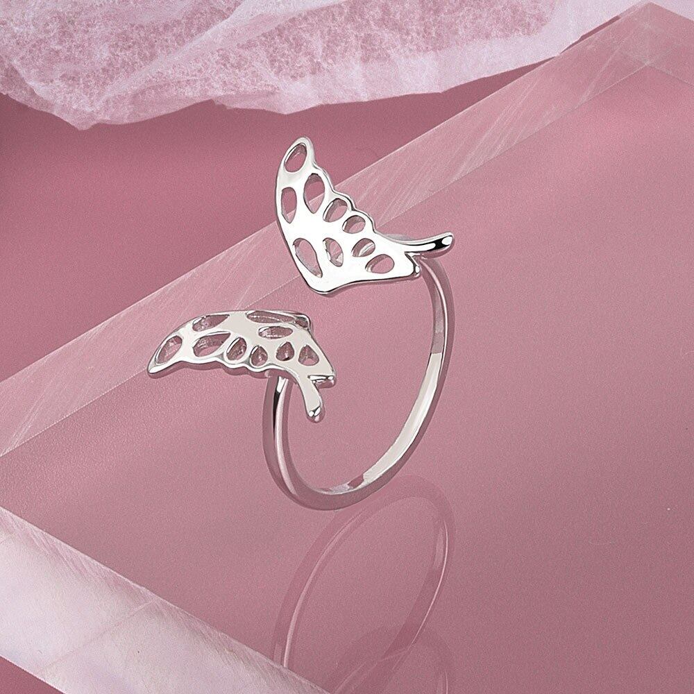 LIVVY シルバーカラー中空バタフライオープン調節可能なリング女性のユニークな気質ジュエリーギフト アジャスタブル 指輪 銀 Liv97519781680