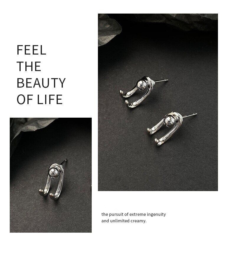 LIVVY シルバーカラー 幾何学スタッドピアス - チャーム 個性 トレンド トレンディ ジュエリー パーティー アクセサリー ギフト イヤリング リング 指輪 銀 Liv21872657132