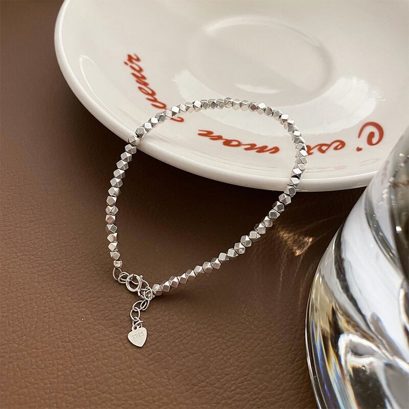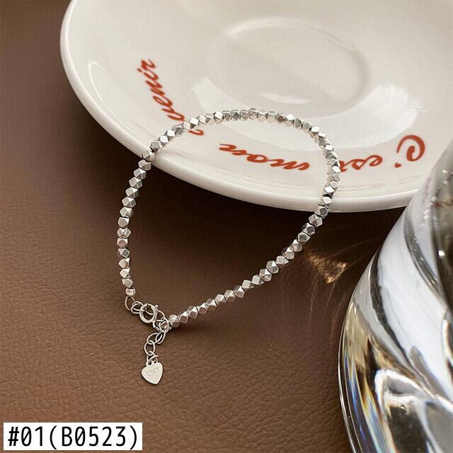 LIVVY シルバーカラーの幾何学ビーズチェーンブレスレット女性カップルアクセサリーシンプルな光沢のあるパーティージュエリー 銀 Liv1452049704