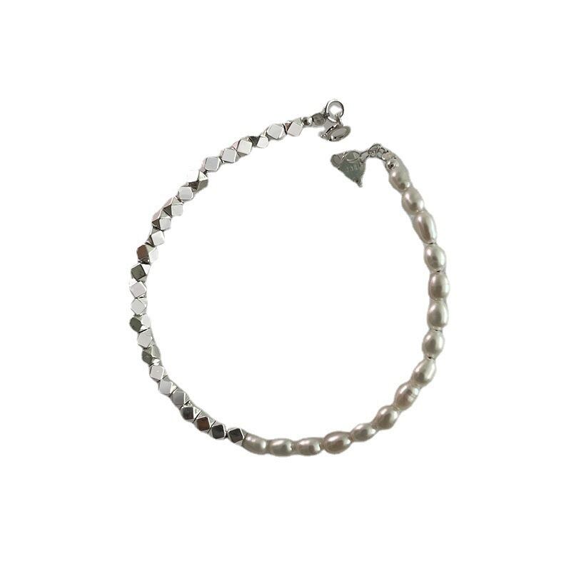 LIVVY シルバーカラーの多角形ビーズパールステッチブレスレット女性クリエイティブ Clic 気質ジュエリーアクセサリー 真珠 銀 Liv45346246442