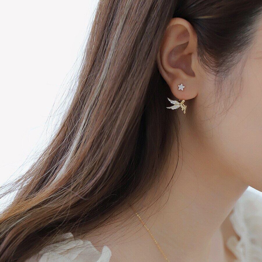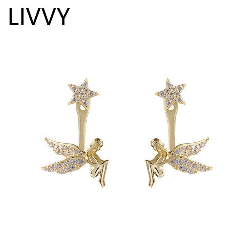 LIVVY クリエイティブジルコン天使の羽スタースタッドピアス女性トレンディなパーティージュエリー イヤリング リング 指輪 Liv68684557054