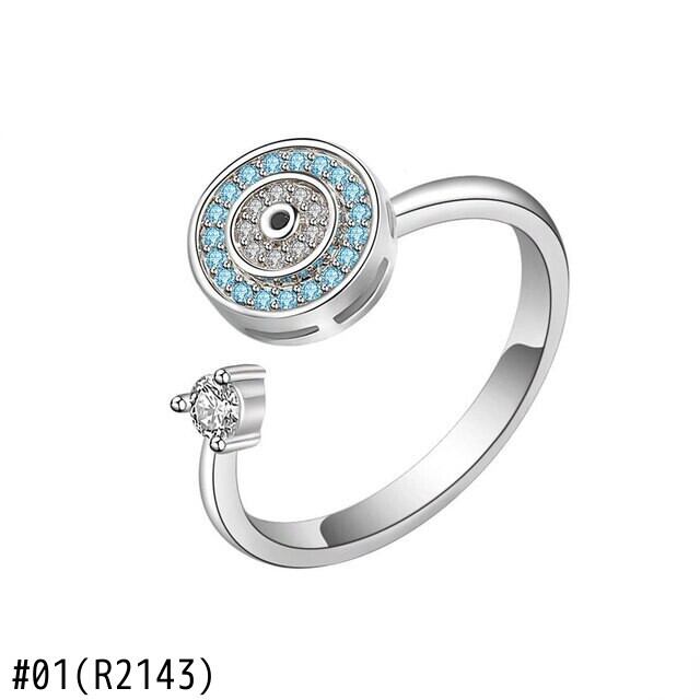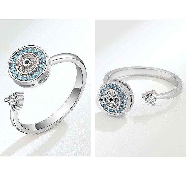 LIVVY シルバーカラースイベルラウンド邪眼オープン調節可能な指リング女性ブルージルコンの高級ジュエリー アジャスタブル 指輪 銀 Liv23697748886