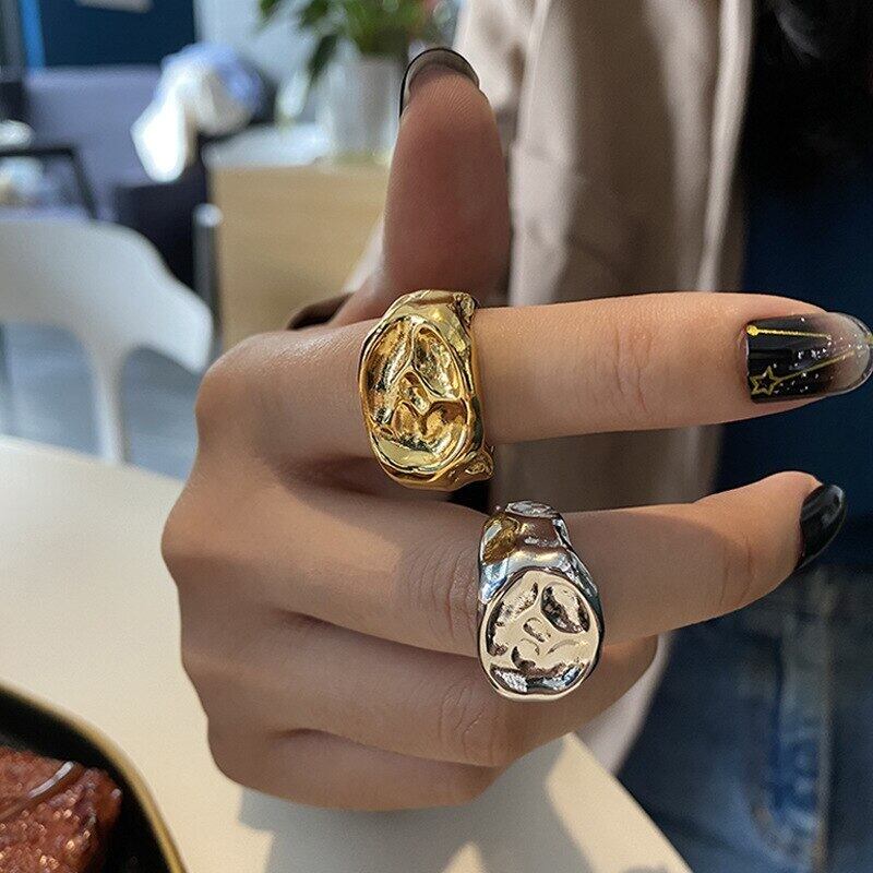 LIVVVY 不規則なシルバーカラーワイドリング女性男性クリエイティブ気質ジュエリーアクセサリーギフト 指輪 銀 Liv3082723107