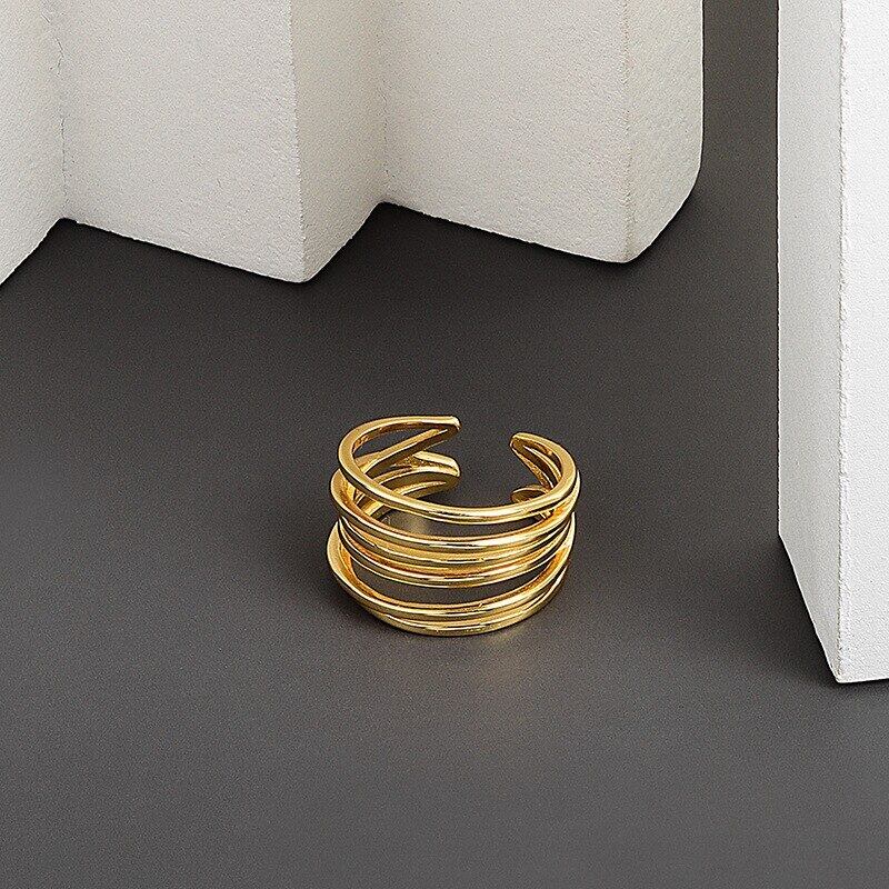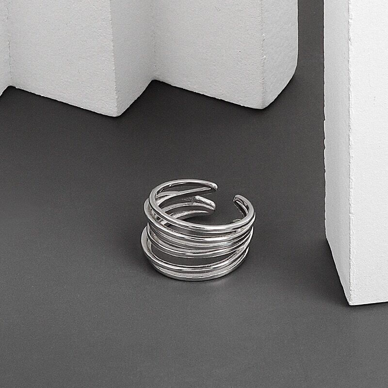 LIVVY シルバーカラーの結婚指輪シンプルな幾何学多層巻き手作りジュエリー女性サイズ調整可能な 2021 トレ アジャスタブル マルチレイヤー リング 銀 Liv46938588796
