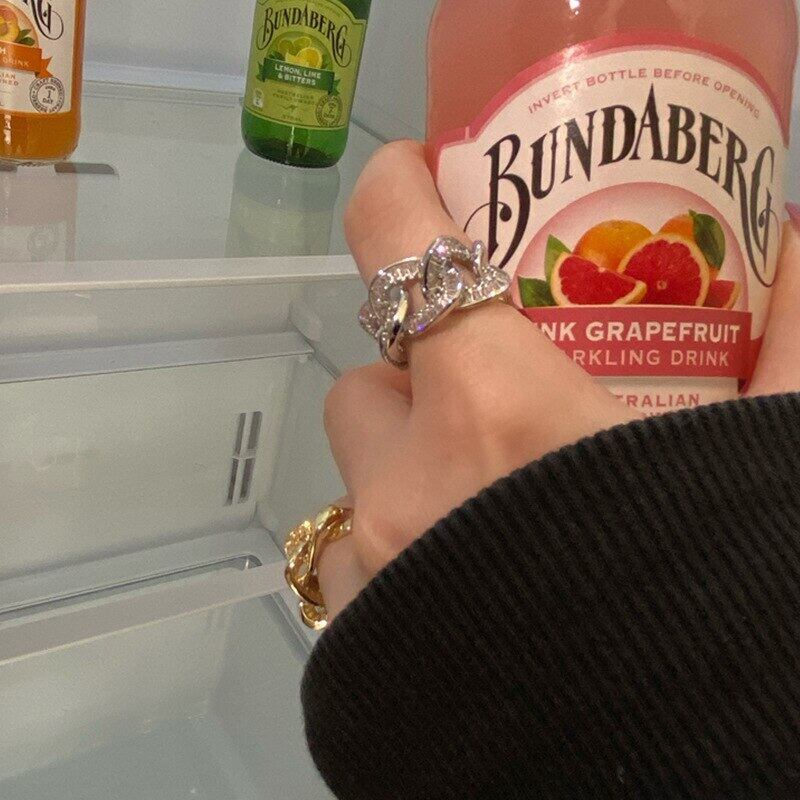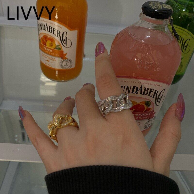 シルバーカラーシンプルな不規則な中空ラウンドチェーンクリスタルジルコン調節可能なリング女性ライト高級光沢のあるジュエリーギフト アジャスタブル 指輪 銀 Liv47415739373
