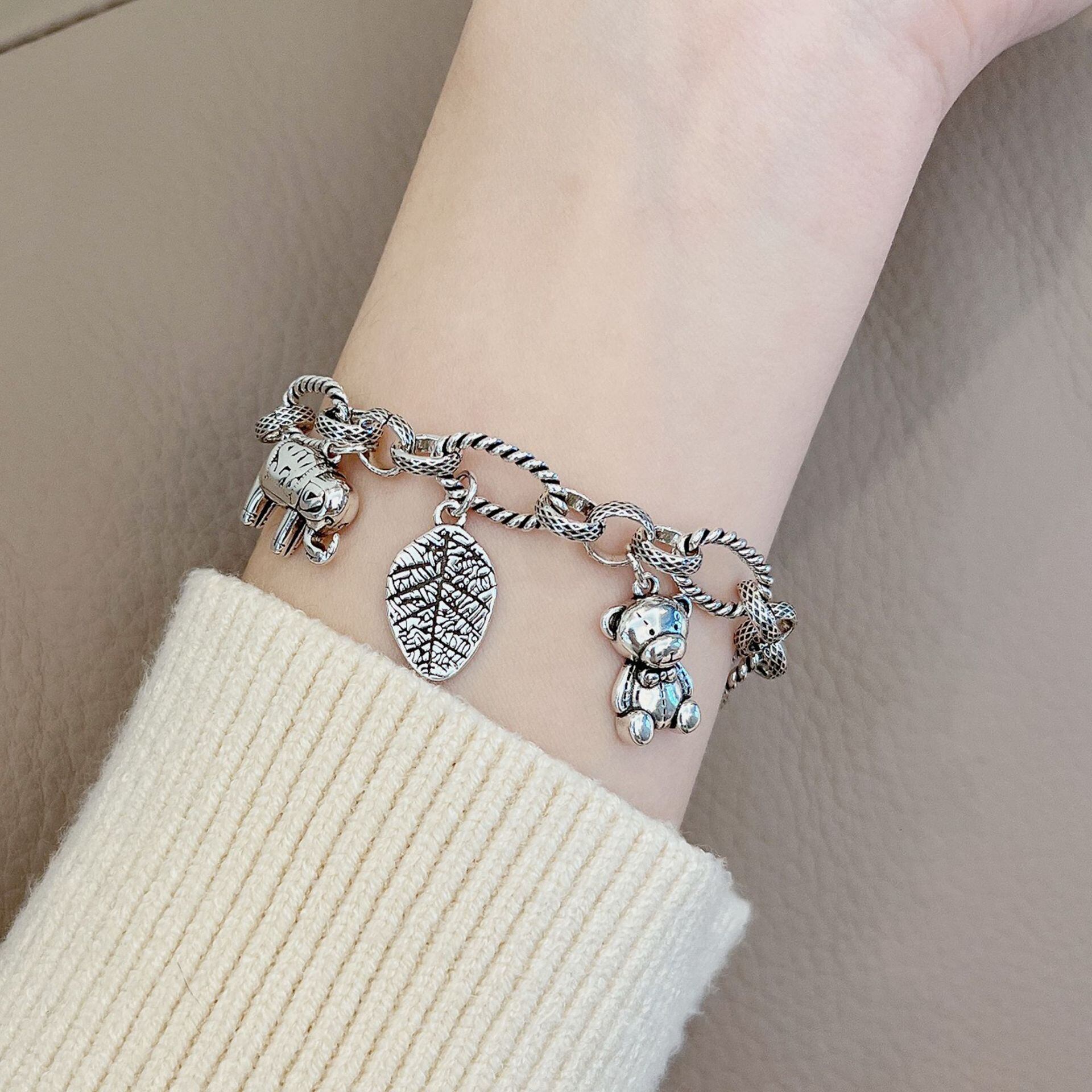 LIVVY シルバー色 ly 到着した象の葉のクマのペンダントブレスレット女性カップルユニークなパーティージュエリー 銀 Liv58696319381