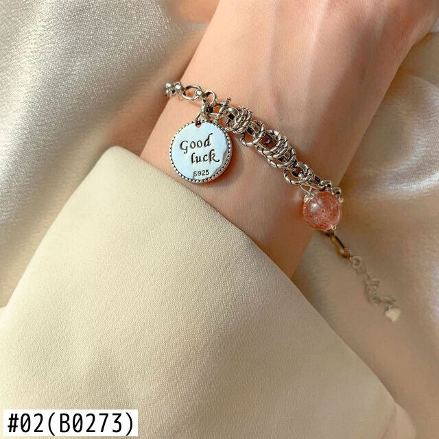 LIVVY シルバーカラー二層ピンクストーンラウンドグッドラッキーレターブレスレットレトロ気質パーソナリティギフト 銀 Liv21964808328