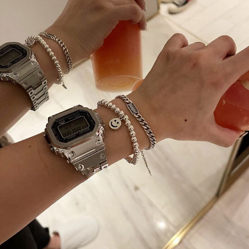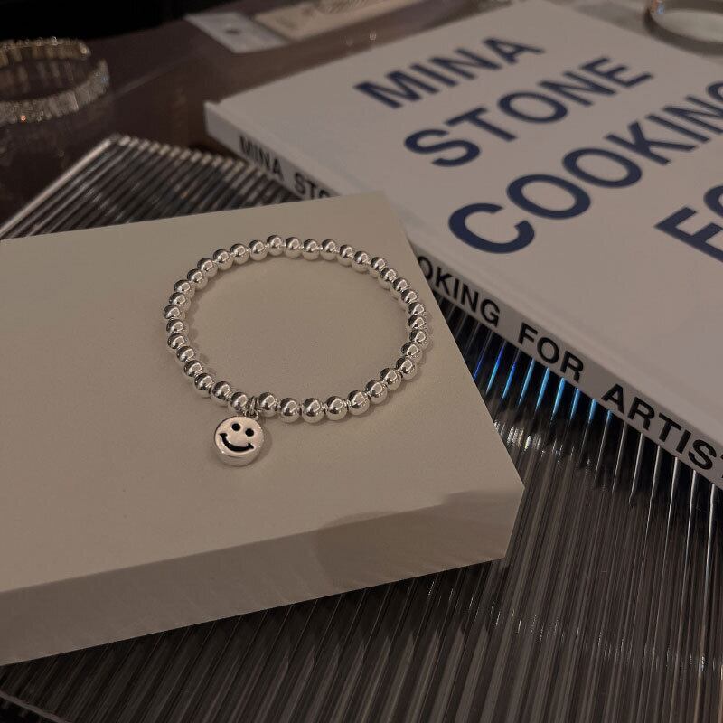 LIVVY シルバーカラーシンプルな小さなラウンドビーズブレスレットバングル女性笑顔ペンダントジュエリー調整可能 アジャスタブル 銀 Liv24655742044