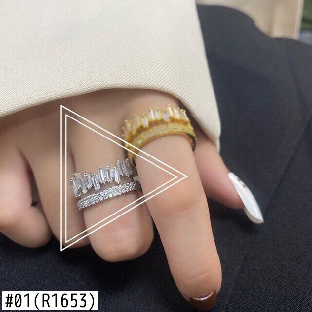 二層半透明クリスタルジルコンシルバーカラーリングシンプルゴージャスジュエリーアクセサリーギフト 指輪 銀 Liv51439634476
