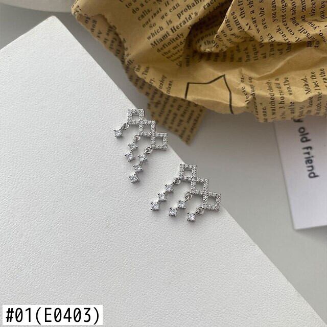 シルバーカラー中空アウトスクエア Tels ジルコンスタッドピアス女性トレンディな気質ライト高級ロマンチックなバレンタインギフト イヤリング リング 指輪 銀 スクウェア Liv25536341480