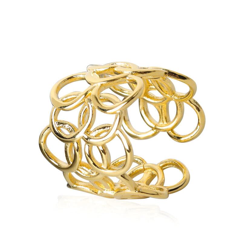 LIVVY シルバーカラーリング女性中空オープン調節可能な指リングファイン抗アレルギージュエリーアクセサリー 2021 トレンド アジャスタブル 指輪 銀 Liv83272390404