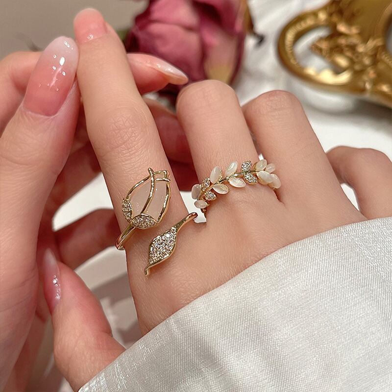 LIVVY ゴールドカラーパンク婚約指輪女性の花の幾何学的な手作りの結婚式の花嫁のジュエリー リング フラワーデザイン Liv41903610627