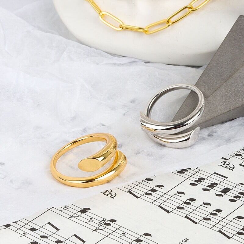 LIVVY ミニマリストシルバーカラーリング滑らかな不規則な幾何学的な女性トレンディなパーティージュエリーの装飾 指輪 銀 Liv73735186846