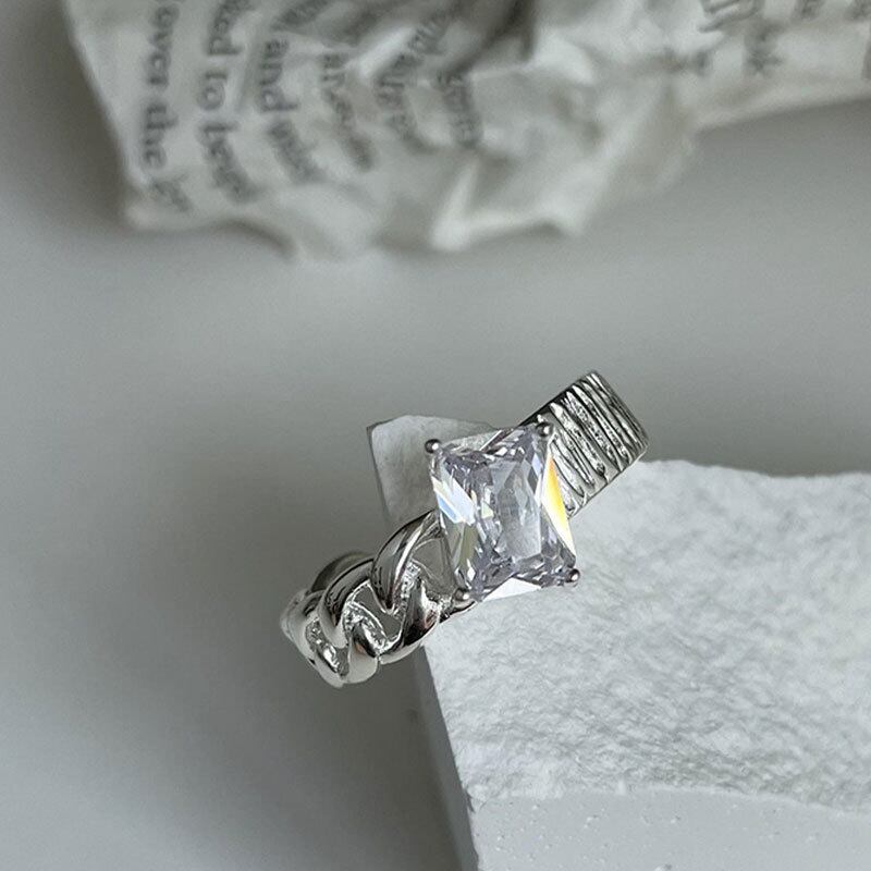 シルバーカラースムーズハート型の幾何学的チェーンオープニングリング女性のスクエアクリスタルリングパーティージュエリー 指輪 銀 スクウェア Liv41711231977