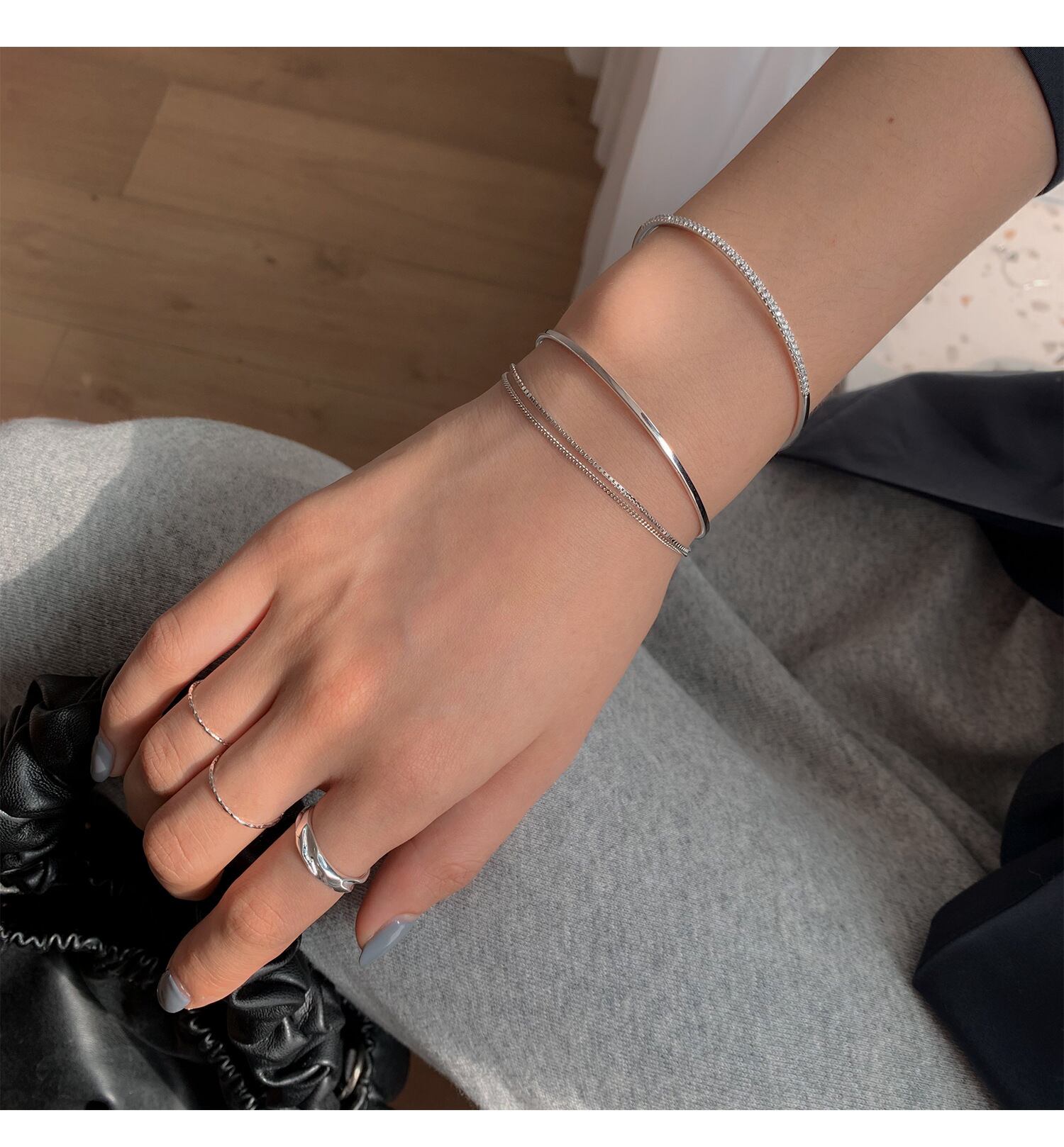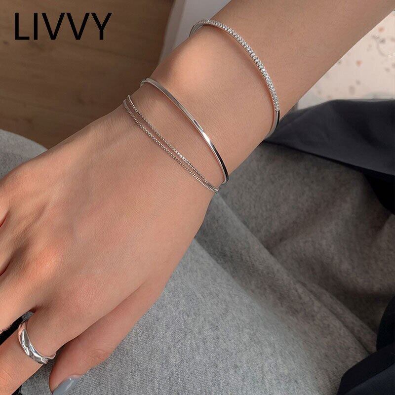 LIVVY シルバーカラーシンプルな幾何学象眼ジルコンオープニングブレスレット女性ジュエリーゴージャスなファインバングル 銀 Liv4242103821