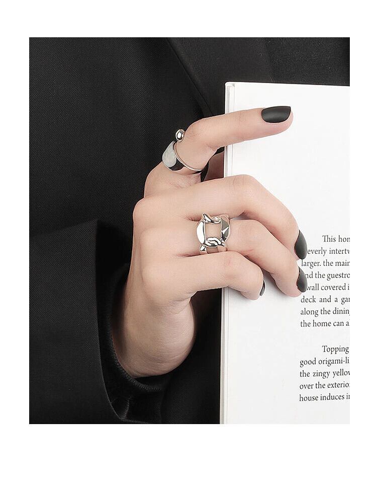 LIVVY シルバーカラー クロス 不規則な中空 幾何学的チェーンリング レトロ ハンドメイド 絶妙なジュエリー 調節可能 アジャスタブル 指輪 銀 Liv4524403715