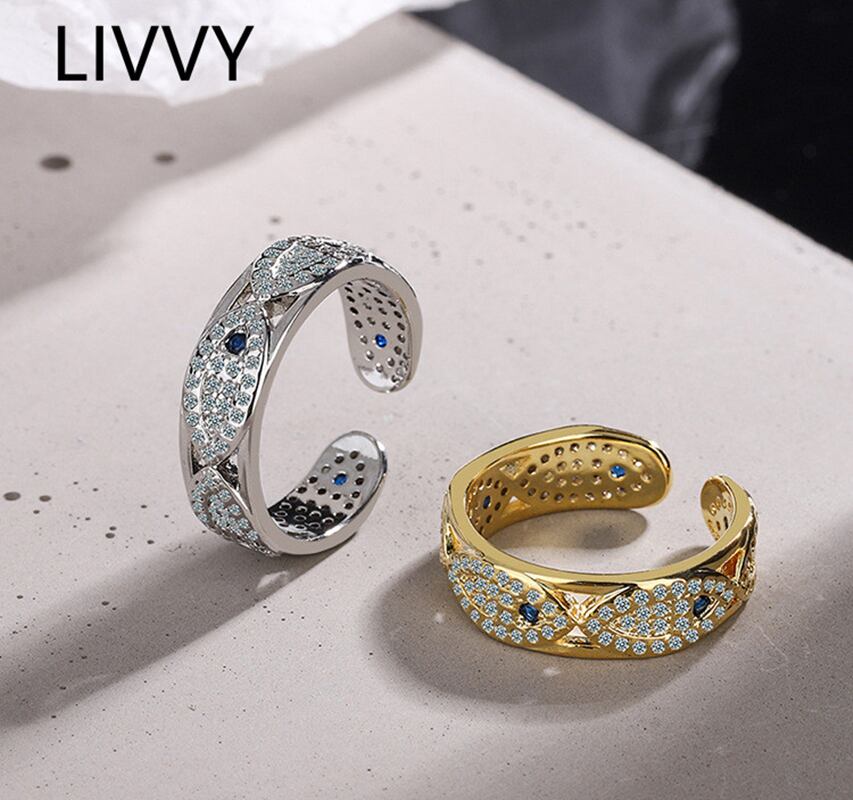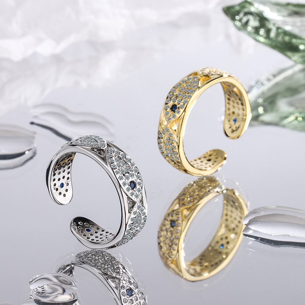 シルバーカラーシンプルな幾何学的な悪魔の目ブルージルコン調節可能なリングレディースメンズジュエリーパーティーアクセサリーギフト アジャスタブル 指輪 銀 Liv18903229945