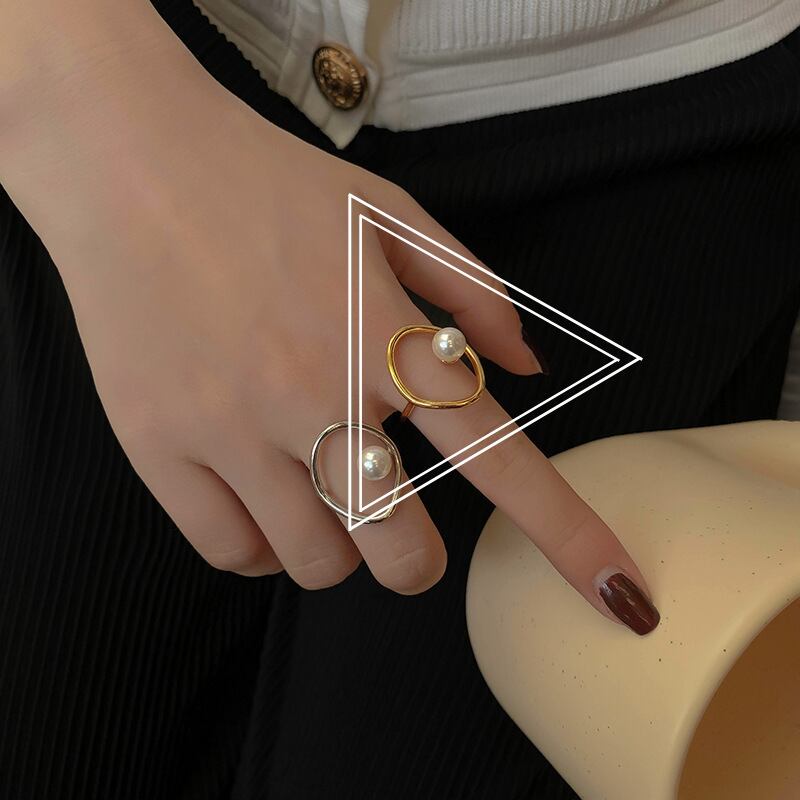 LIVVY シルバーカラー調節可能なパールリング女性シンプルなフランス中空幾何学的なウェディングジュエリー アジャスタブル 指輪 真珠 銀 Liv47540501904