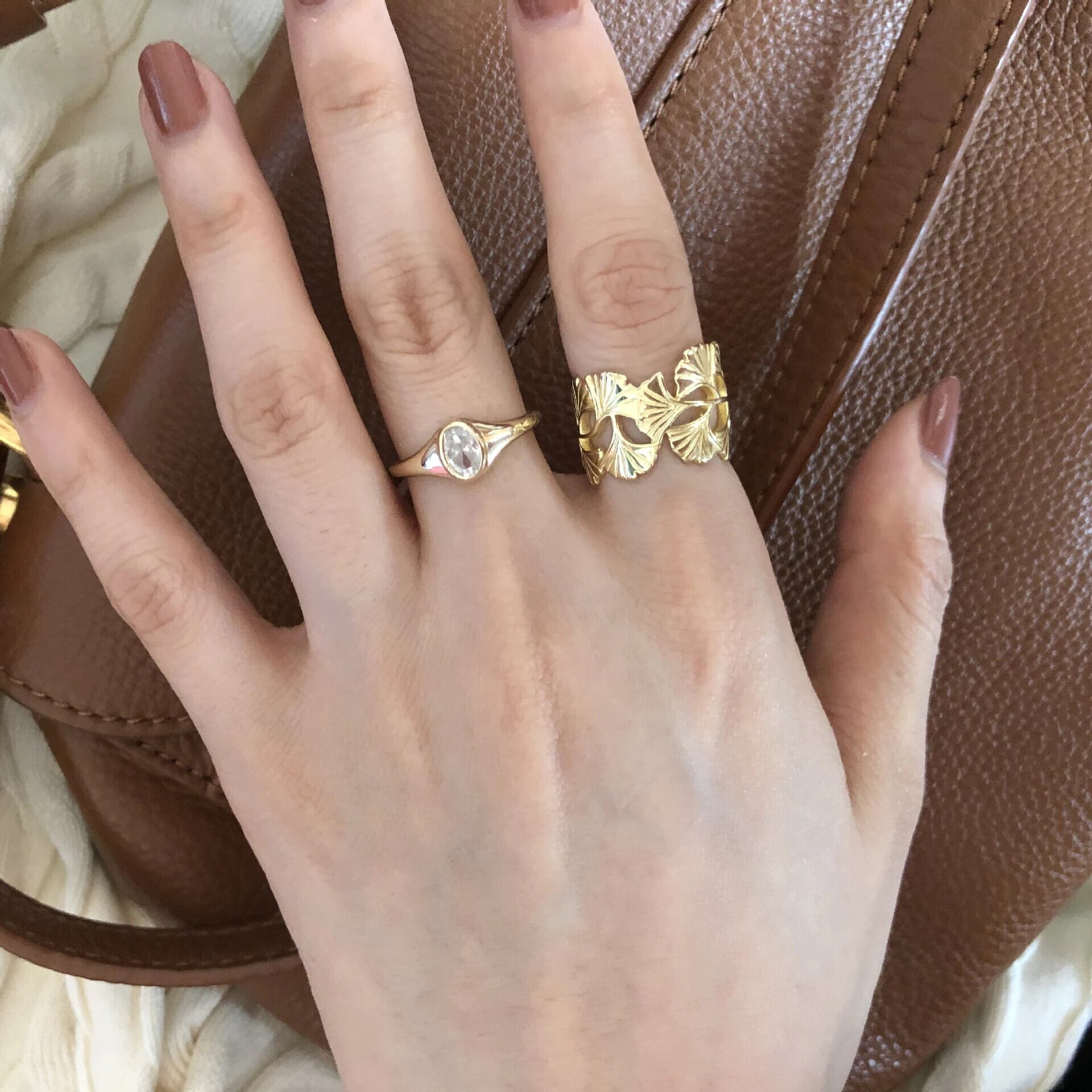 LIVVY シルバーカラー ハンドメイド イチョウの葉 リング 気質 エレガント オープン 調節可能 ジュエリー ギフト アジャスタブル 指輪 銀 Liv88564208103