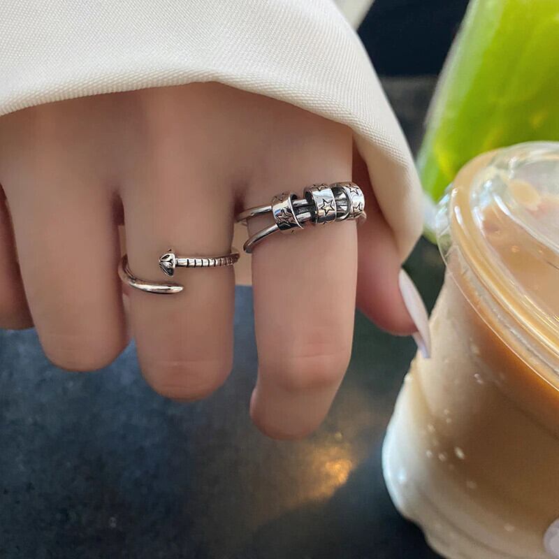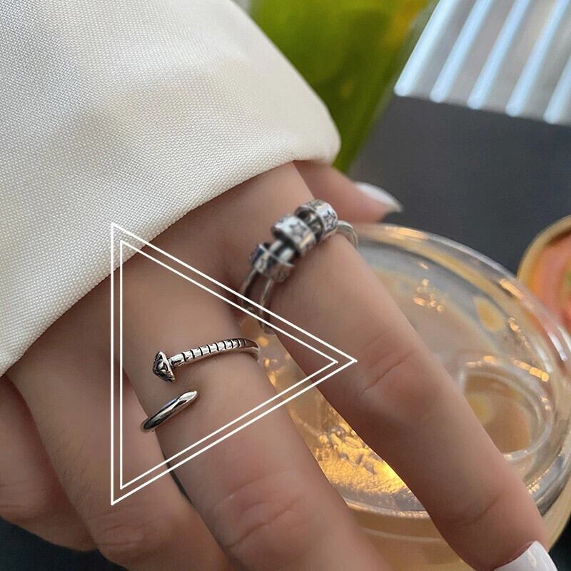 LIVVY ly到着タイシルバーカラーシリンダースター二重層リング女性クリエイティブスクリュージュエリーギフト 指輪 銀 Liv14533841878