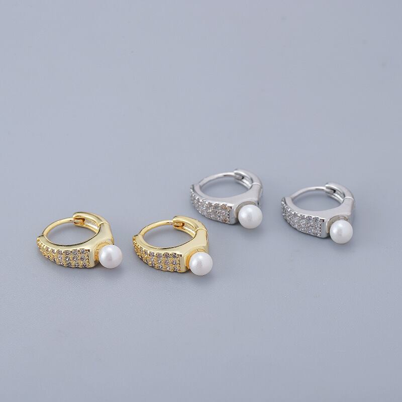 LIVVY シルバーカラートレンドシンプルパールジルコン耳クラスプフープイヤリング女性ファインエレガンスジュエリーギフト 真珠 指輪 銀 Liv22164756716