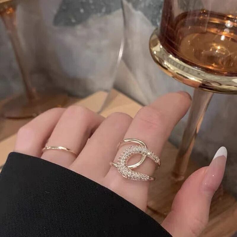 LIVVY シルバーカラー ダブル クロス シャイン ジルコン リング - エンド トレンド クリック ジュエリー アクセサリー 指輪 銀 Liv16116944763
