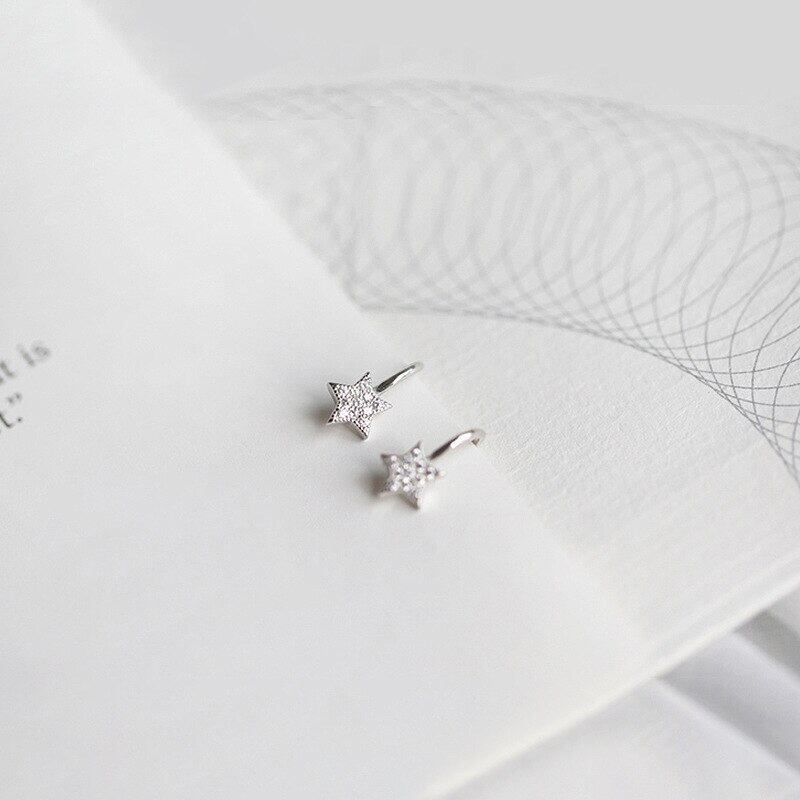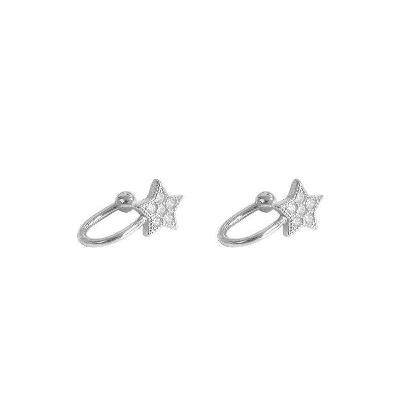 LIVVY シルバーカラースウィートロマンチックスタージルコン耳クリップイヤリング女性女の子シンプルなユニークな耳穴のないジュエリーギフト 大人ガーリー キュート カジュアル 指輪 銀 Liv46476479592