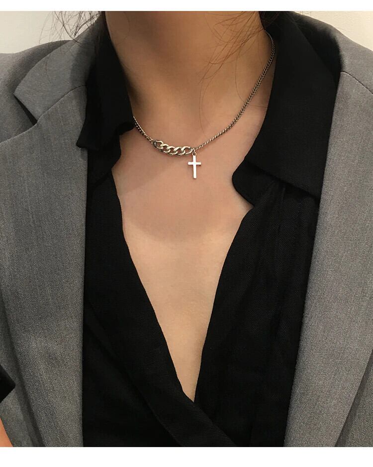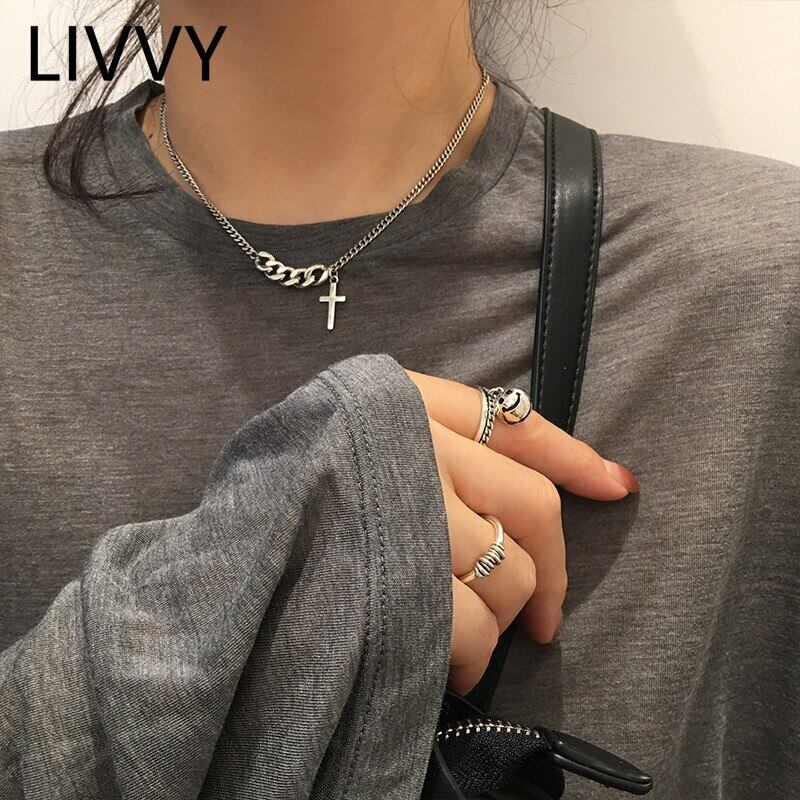 LIVVY シルバーカラー シンプル クロス ペンダント ネックレス シンプル 鎖骨チェーン 気質 ギフト レース 銀 Liv23136245681