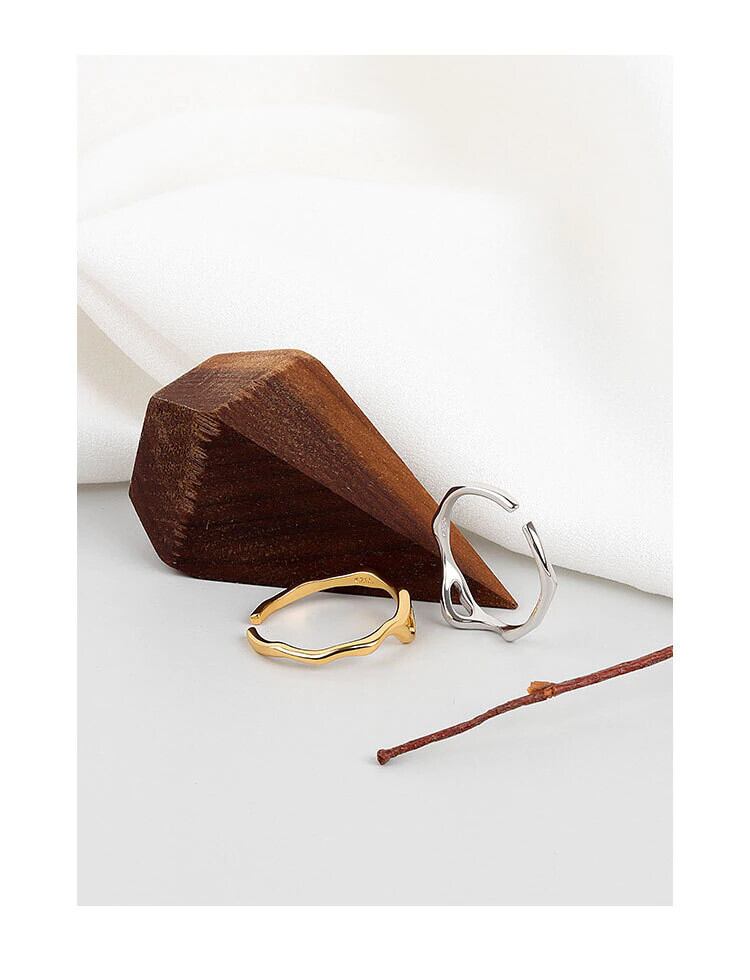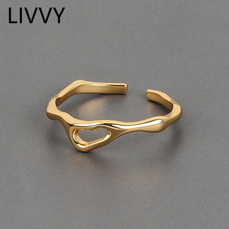 LIVVY 不規則な幾何学中空リングシルバーカラーオープンナローリング女性レトロユニークなジュエリー調整可能 アジャスタブル 指輪 銀 Liv52449044847