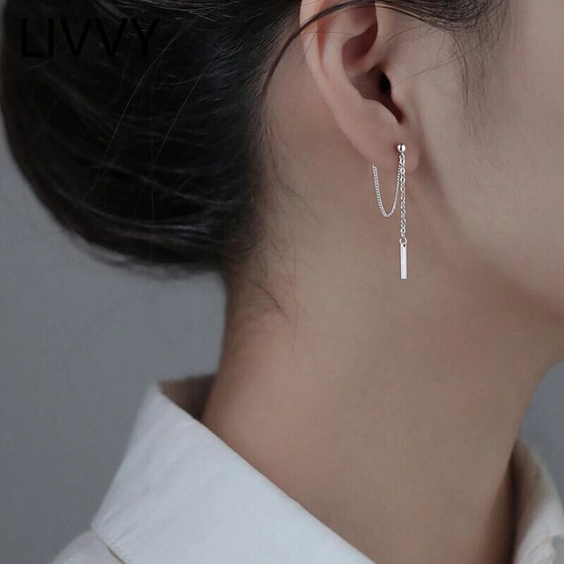 LIVVY シルバーカラーのトレンディなロングチェーン Tel イヤリング女性のカップルチャーミングジュエリーパーティーアクセサリーギフト 指輪 銀 Liv21096734977