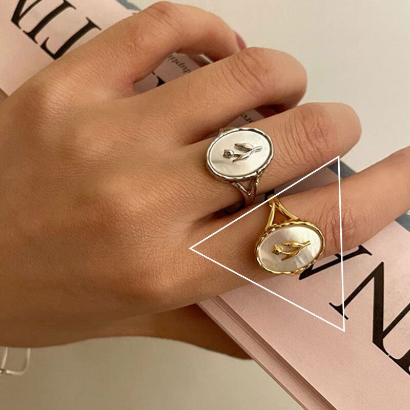 LIVVY シルバーカラーチューリップオーバルシェルフラワーリング女性女の子気質パーティー指ジュエリーギフト 指輪 フラワーデザイン 銀 Liv39222986149
