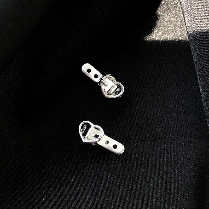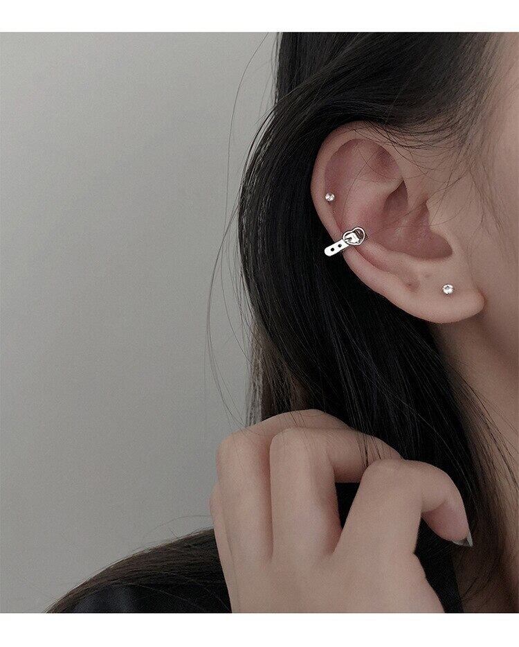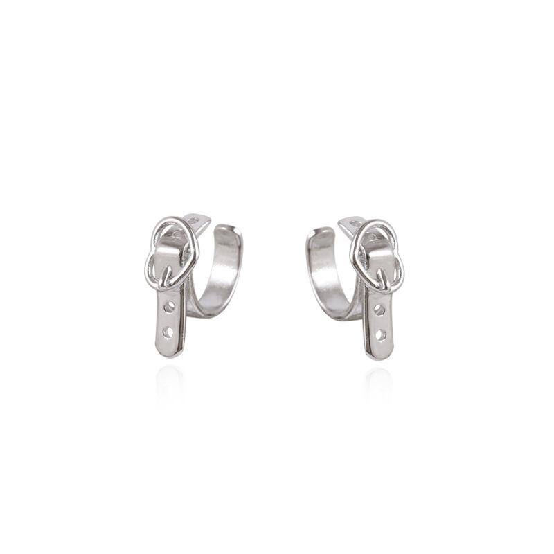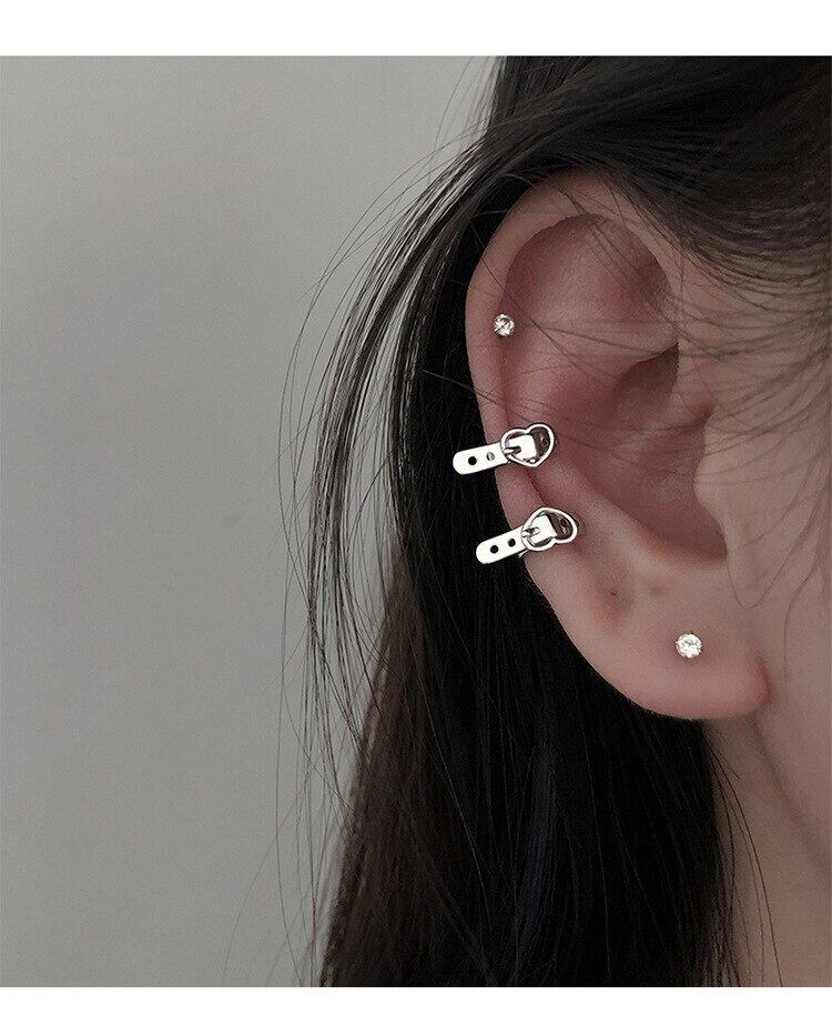 LIVVY シルバーカラークリエイティブ耳クリップイヤリングベルト幾何学 Hesrt 手作りイヤリングパーティーアクセサリージュエリーギフト ハーネス 指輪 銀 Liv27296628854