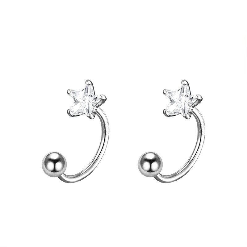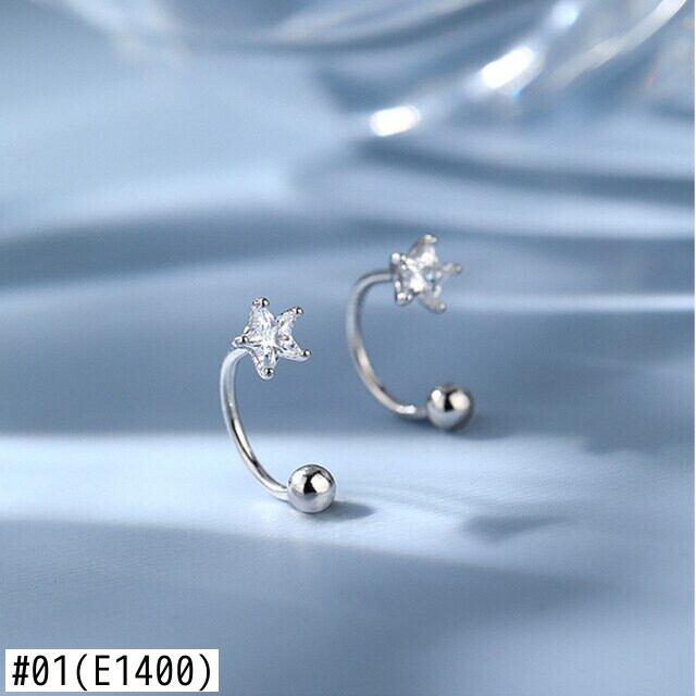LIVVY シルバーカラー防止アレルギースタッドピアス女性アクセサリー人気のスパークリングジルコンスター花嫁ジュエリー イヤリング 指輪 銀 Liv77836259643