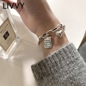 LIVVY タイ シルバーカラー シンプル スムース ハート ボール スクエア レター ペンダント ブレスレット ユニークなジュエリー ギフト 銀 スクウェア Liv30559344238