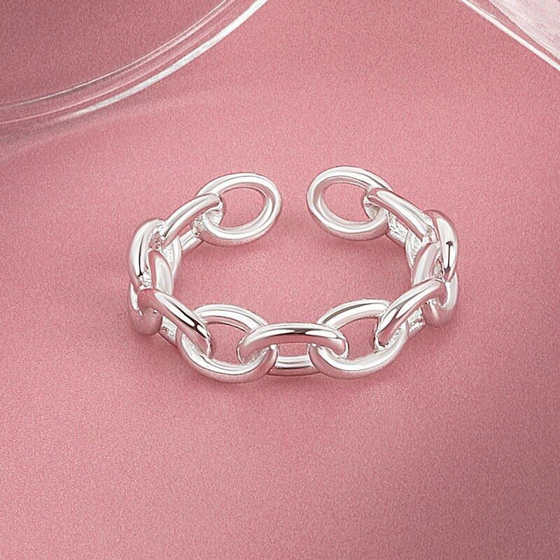 LIVVY シルバーカラー中空ラウンドクロスチェーンリング女性シンプルな手作りオープニング指ジュエリーカップル 指輪 銀 Liv68785707185