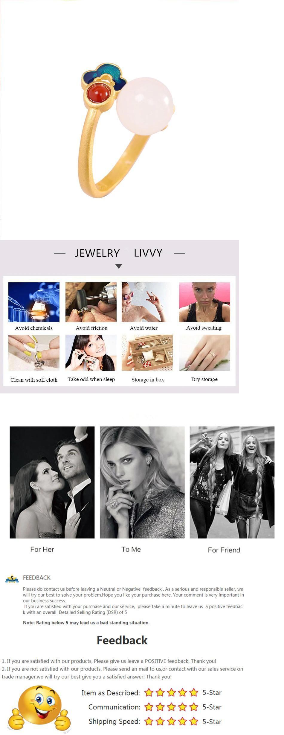 LIVVY 中国風の球状天然石色釉薬調整リング女性シンプルなクリエイティブジュエリーギフト アジャスタブル ナチュラル 指輪 Liv42756847030