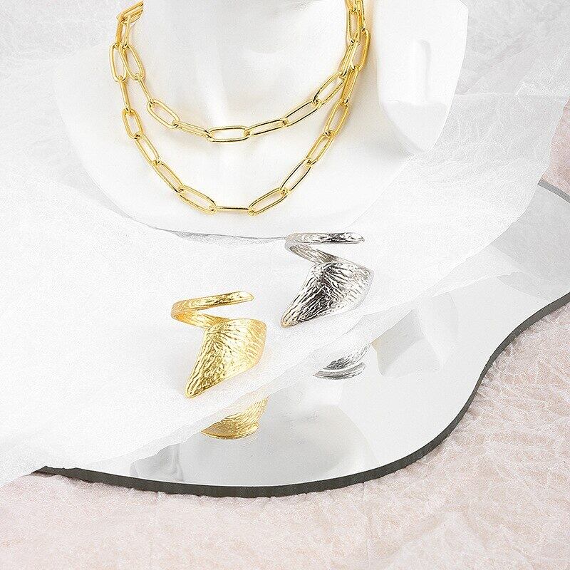 LIVVY シルバーカラー ハンドメイド 太め 不規則 ストライプ リング レトロ イン トレンド オープン カップル ギフト 指輪 銀 Liv1731671045