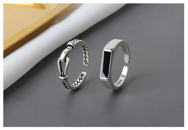 LIVVY シルバーカラー幾何学黒調節可能なリングミニマリストファインジュエリー女性パーティーギフト 2021 トレンド ブラック アジャスタブル 指輪 銀 Liv30583628343