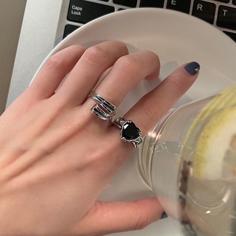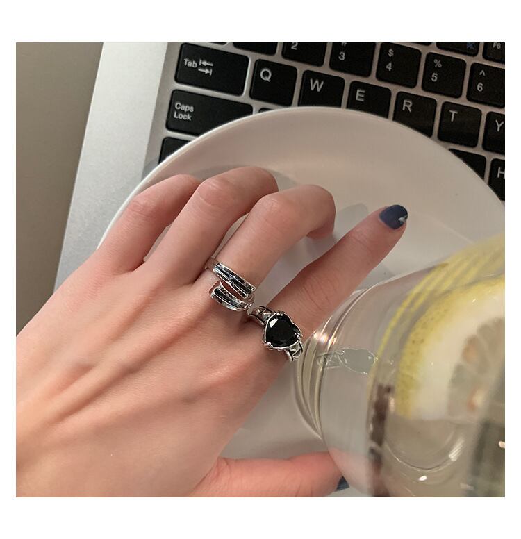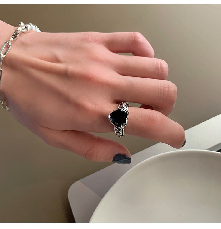 LIVVY シルバーカラーかわいい黒愛のハート形調節可能なリング女性少女パーティージュエリーギフト ブラック 大人ガーリー スウィート キュート カジュアル アジャスタブル 指輪 銀 Liv10494636960