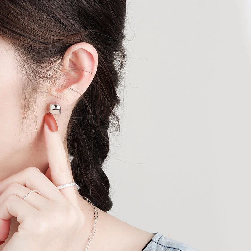 LIVVY シルバーカラースクエアイヤリング女性ガールデイリートレンディ Clic ジュエリーギフトアクセサリーを飾るために耳領域 指輪 銀 スクウェア Liv85124578723