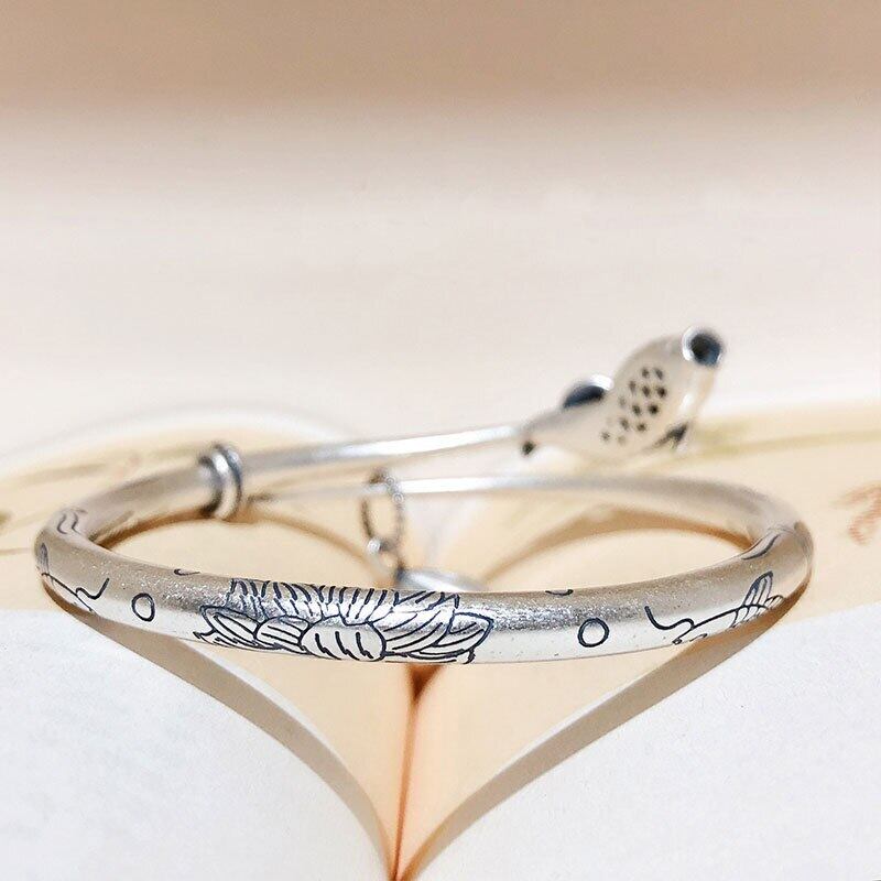 LIVVY タイシルバーカラーロータスフィッシュバングル女性レトロエスニックスタイルブレスレット手作りジュエリーギフトを調整 銀 Liv11130764411