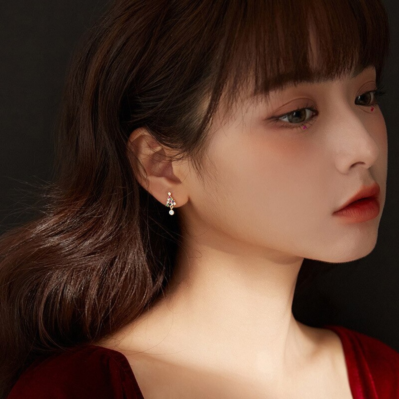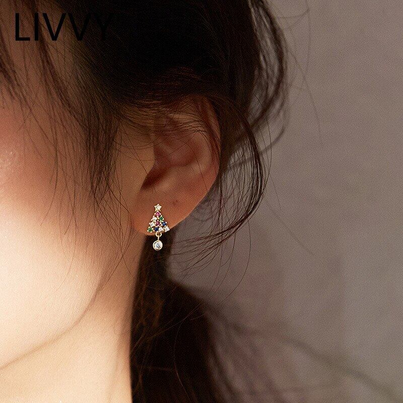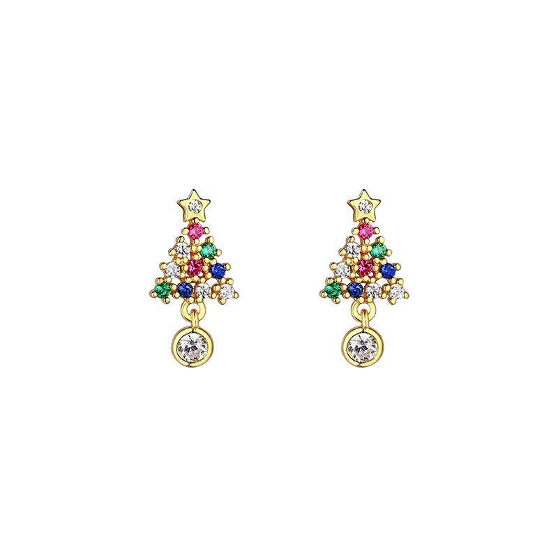 LIVVY カラフル クリスマス ツリー スタッド イヤリング チャーム レディース スター ジルコン ジュエリー シンプル かわいい パーティー アクセサリー 大人ガーリー スウィート キュート カジュアル 指輪 Liv6760083689