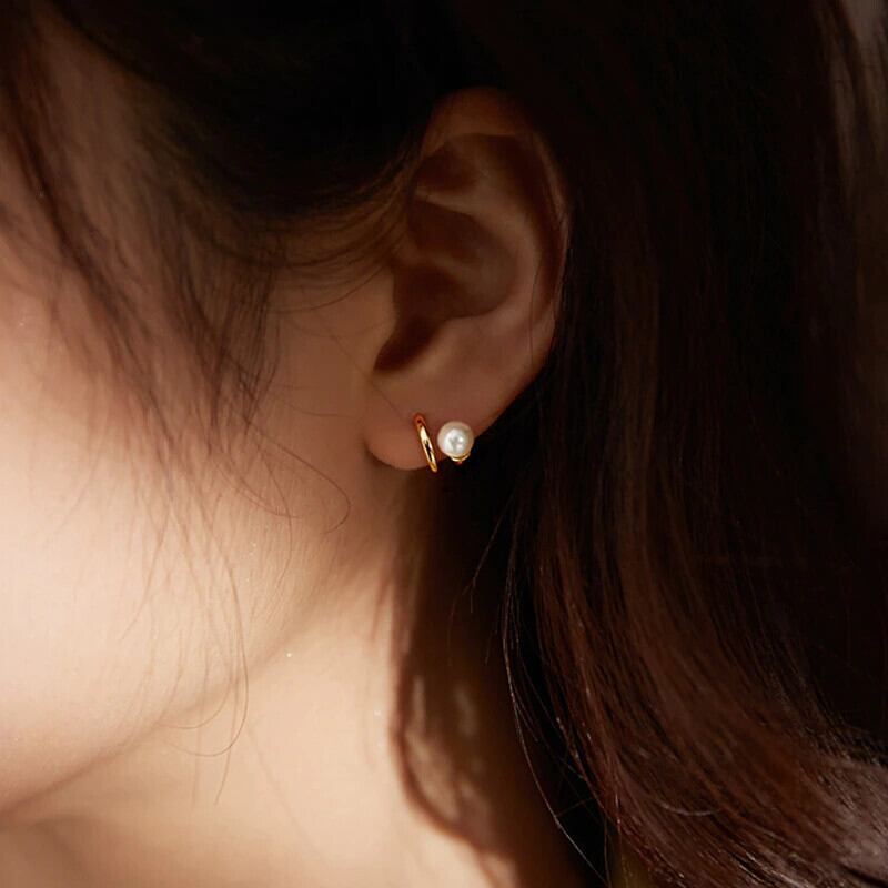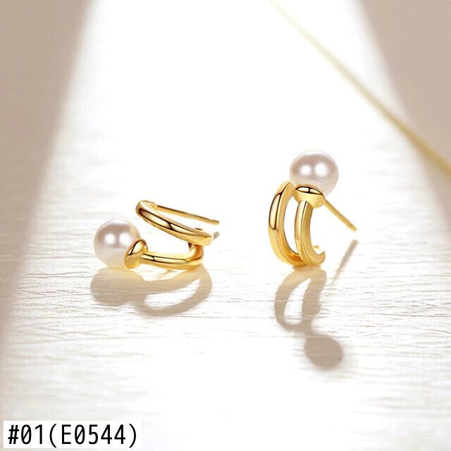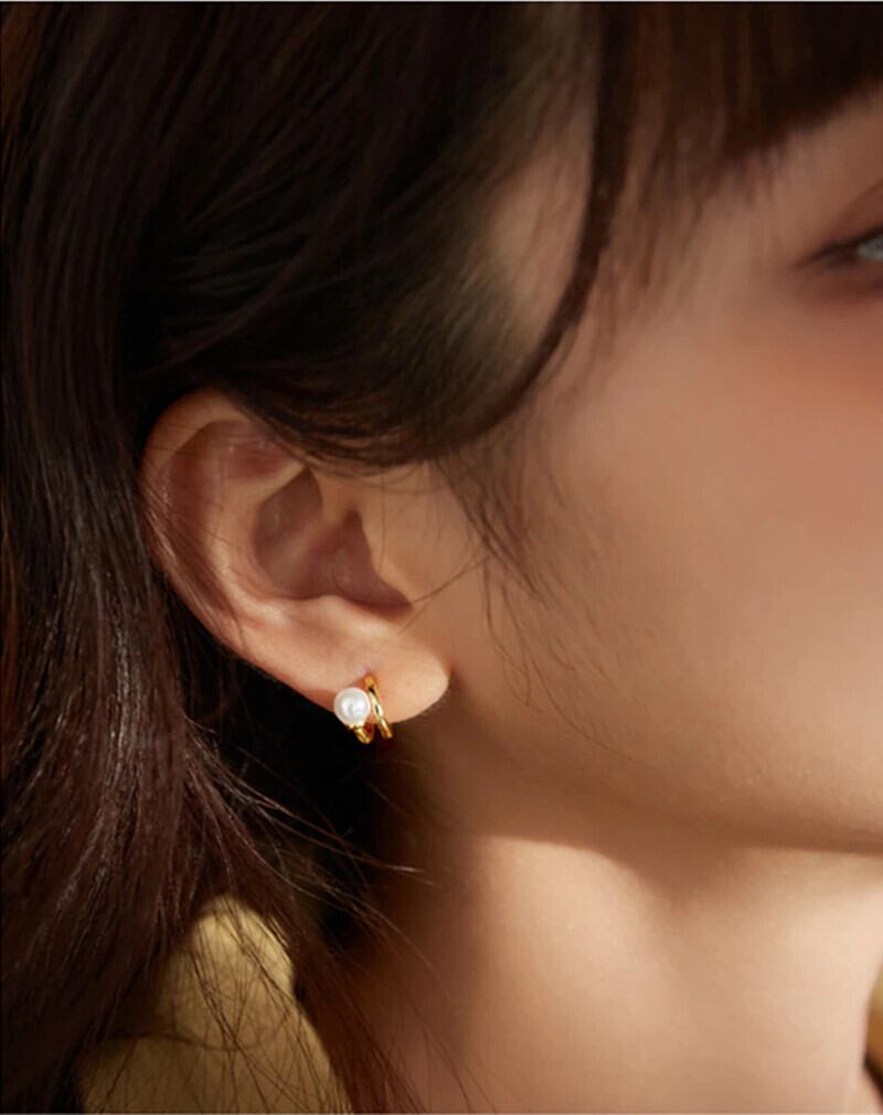 LIVVY シルバーカラービッグパールダブルイヤリング トレンディな誕生日 気質チャーム パーティージュエリー 真珠 指輪 銀 Liv620785871